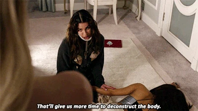 Hester reports her history that has made her obsessed with death and then advises how to inconspicuously dispense of Chanel No. 2's body. Chanel responds that Hester is an obvious psychopath and instructs her to grab the duvet to wrap No. 2 up. Hester follows Chanel's direction.