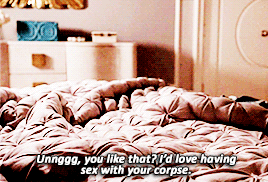 Chanel Oberlin and Chanel #5 are in the freezer arguing after Chanel #2's body is missing. #5 explains that she was bored and went to the freezer to find that #2's corpse disappeared. She also says that the previous night she had an "amazing threesome" with twin brothers Dodger and Roger, and she would rather have sex with them than try to discover who the killer is. #1 is shocked when #5 says that she does not care what happened to #2, because that's #1's problem, and when people start noticing that she is missing they will start snooping about Kappa Kappa Tau. After Chanel #5 leaves the freezer room, #1 screams that she will destroy her.